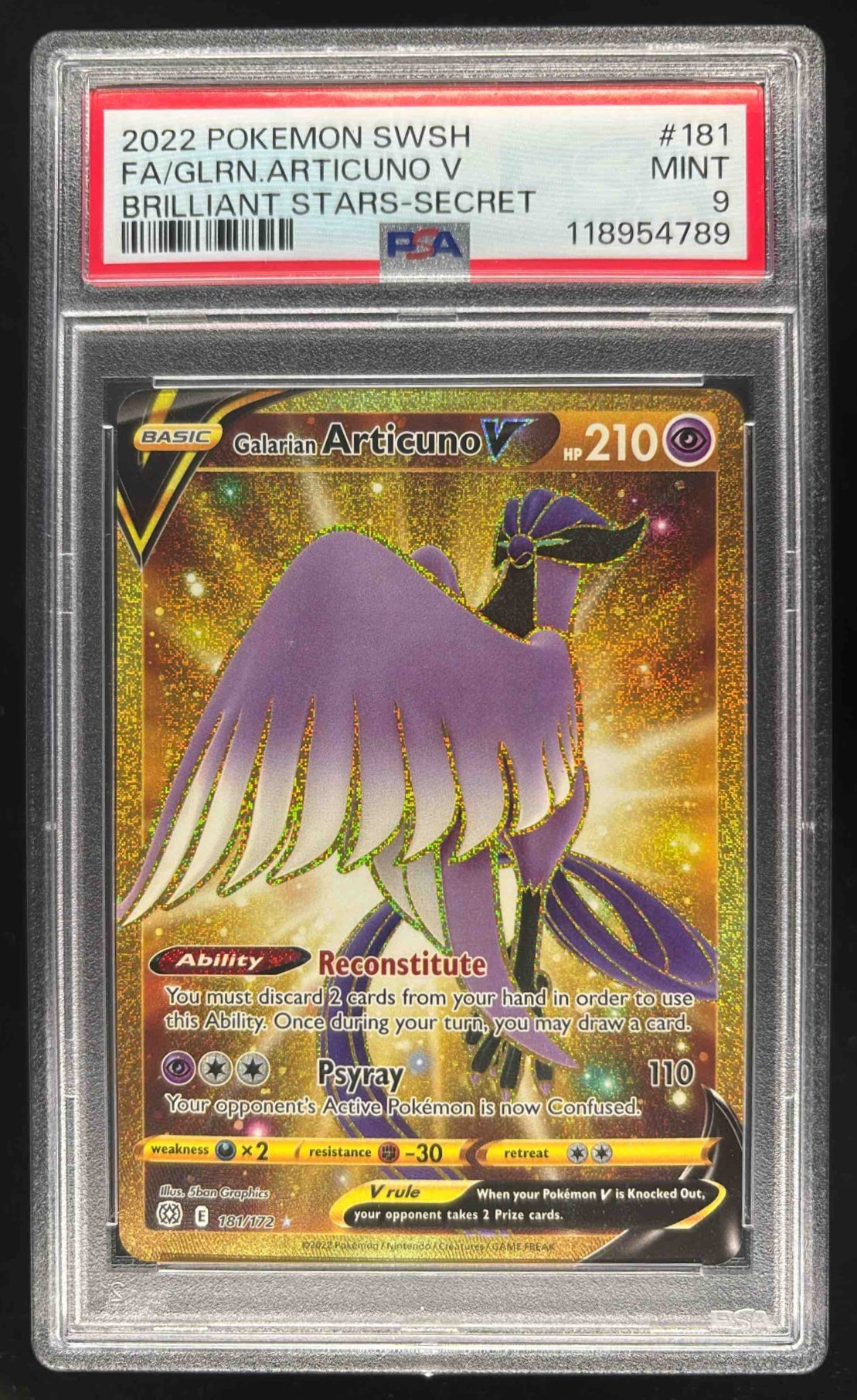 2022 Pokemon Sword & Shield Brilliant Stars #181/172 Galarian Articuno V PSA 9