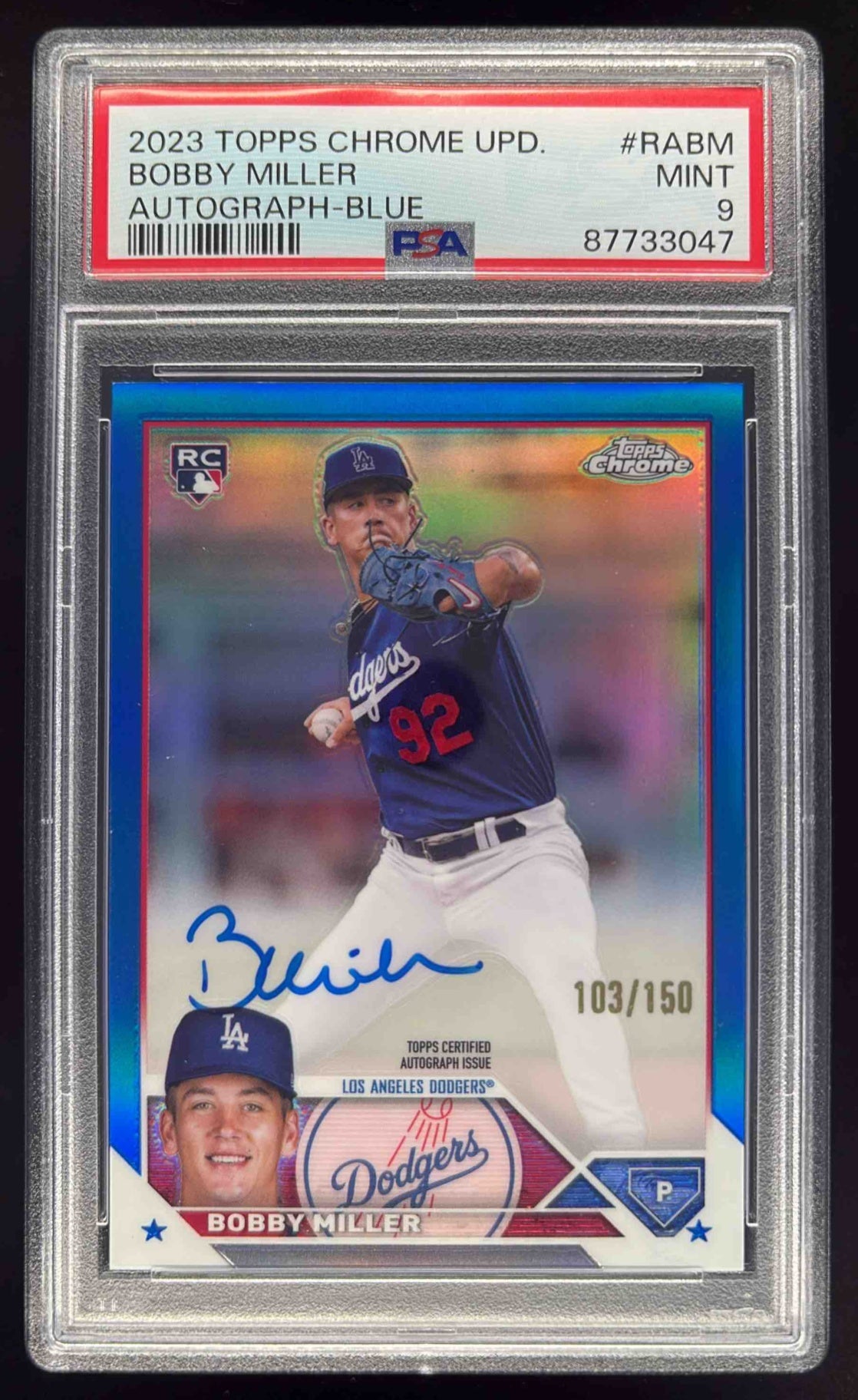 2023 Topps Chrome Update Blue Refractor #RA-BM Bobby Miller RC Auto /150 PSA 9