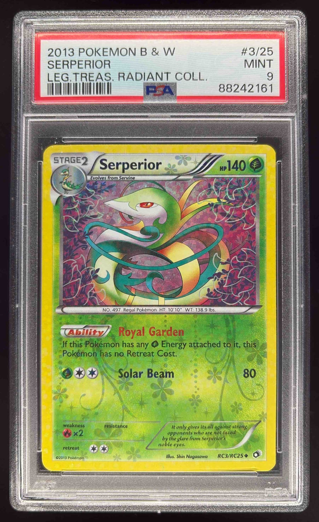 2013 Pokemon Black & White Legendary Treasures Radiant #RC03 Serperior PSA 9