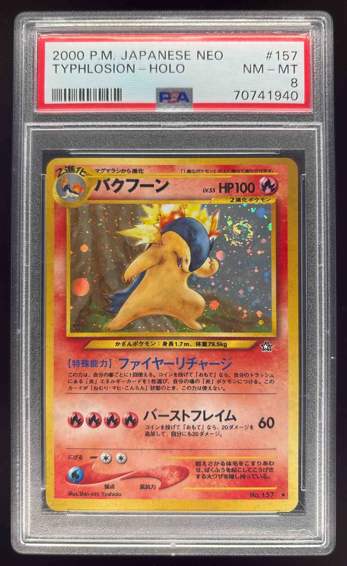 2000 Pokemon Japanese NEO #157 Typhlosion Rare Holo PSA 8