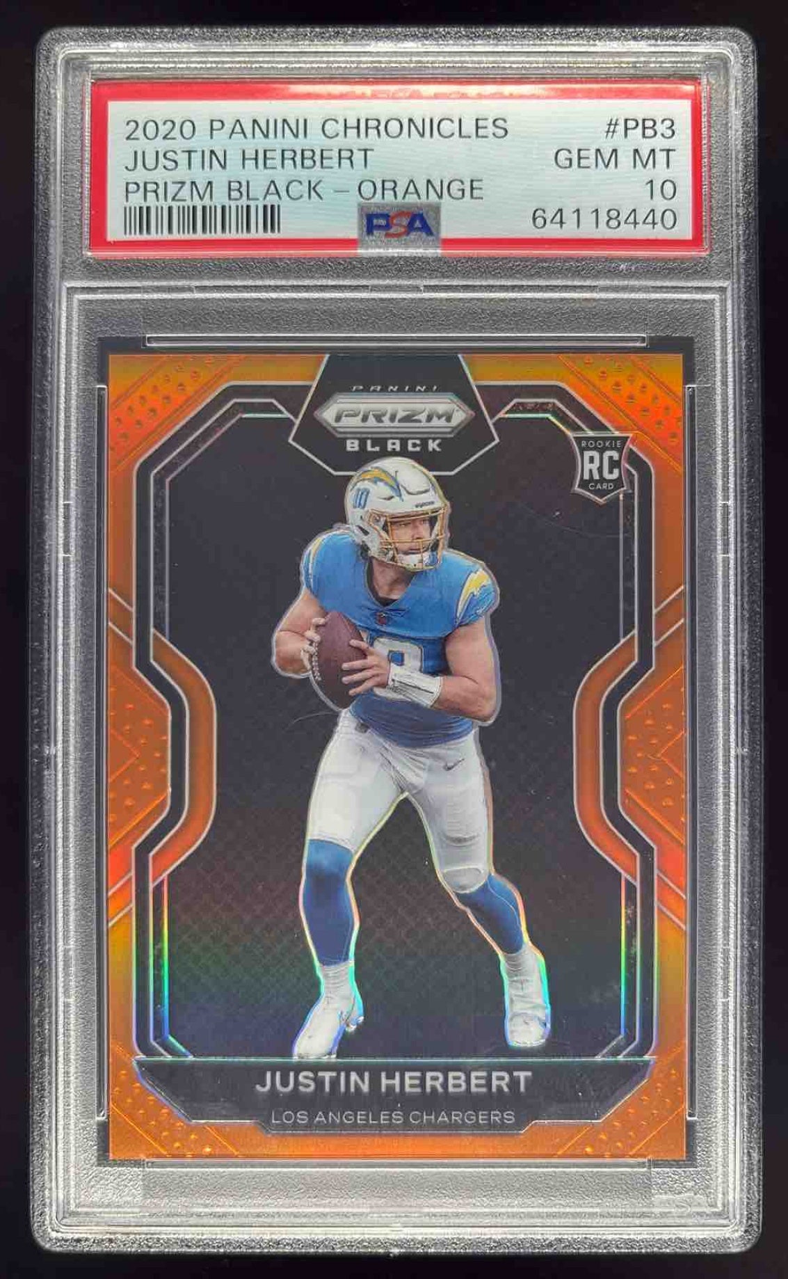 2020 Panini Chronicles Prizm Black Orange #PB-3 Justin Herbert RC /75 PSA 10