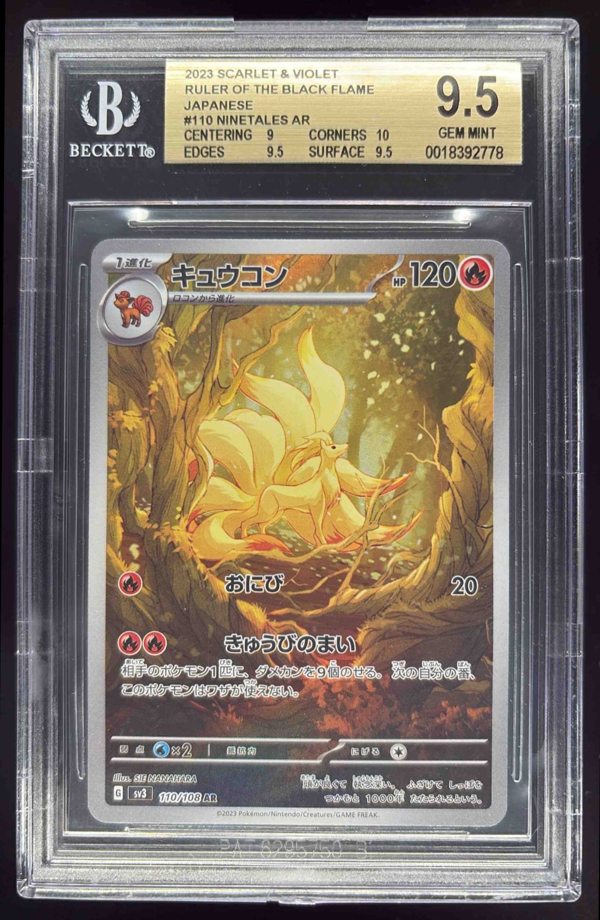 2023 Pokemon Scarlet & Violet Ruler of Black Flame Japanese Ninetales BGS 9.5