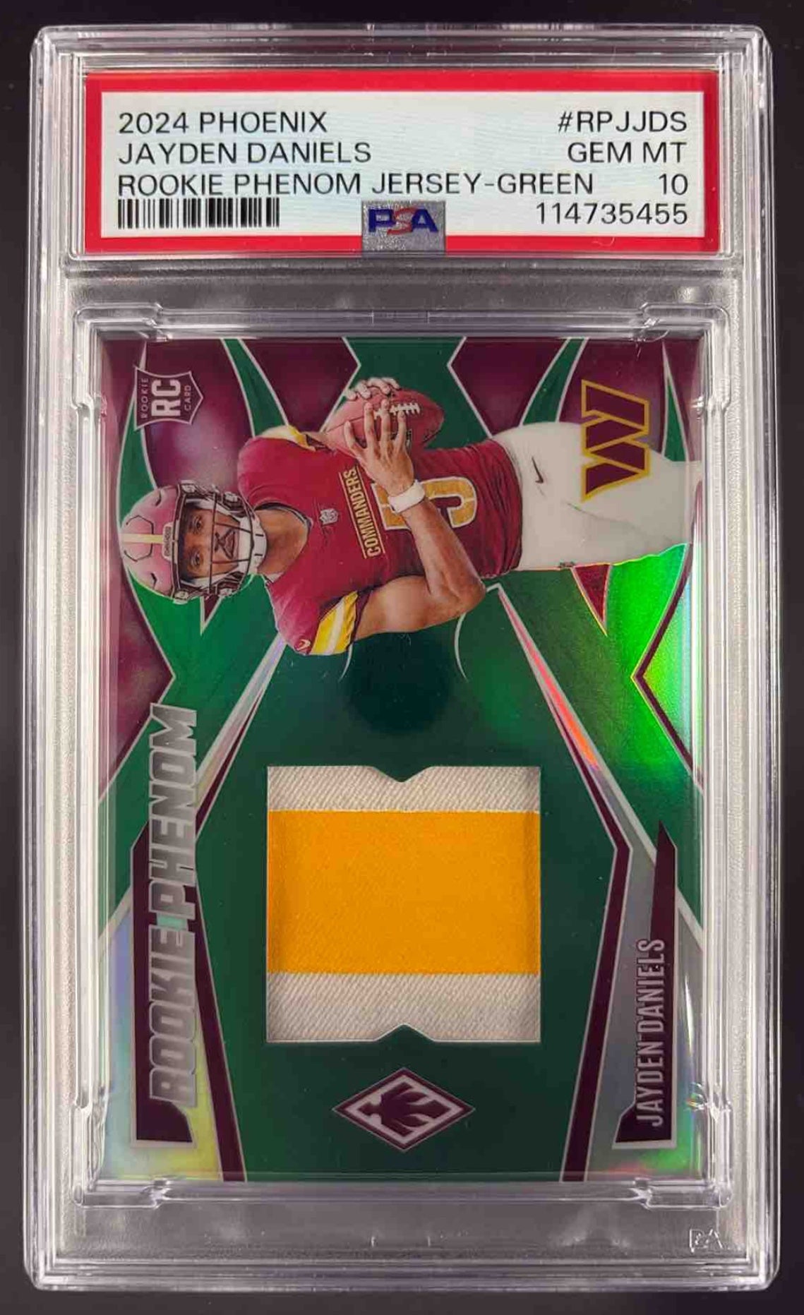 2024 Phoenix Rookie Phenom Jersey Green #RPJ-JDS Jayden Daniels RC /25 PSA 10