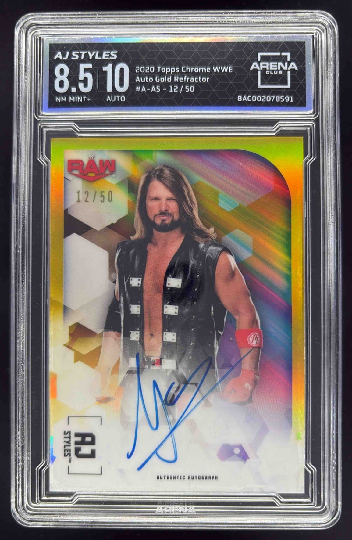2020 Topps Chrome WWE Autographs Gold #A-AS AJ Styles Auto /50 Arena 8.5