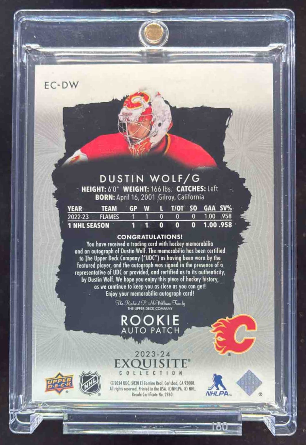 2023-24 Exquisite Collection Rookie Auto Patch #EC-DW Dustin Wolf Auto /32