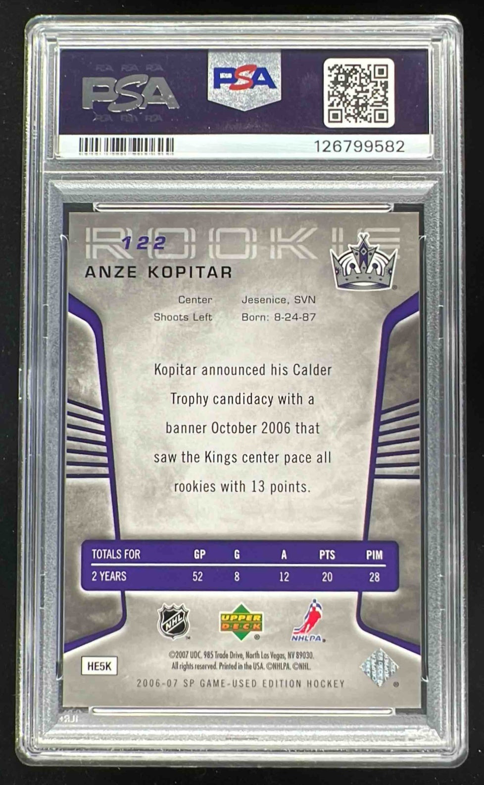 2006-07 SP Game Used Rainbow #122 Anze Kopitar RC /25 PSA 8