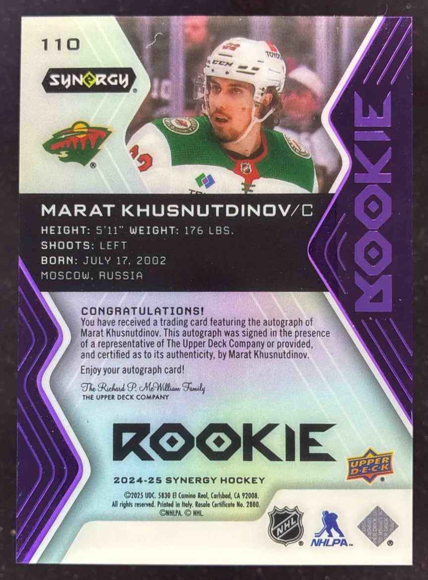 2024-25 Upper Deck Synergy Purple #110 Marat Khusnutdinov Autograph RC Auto /99