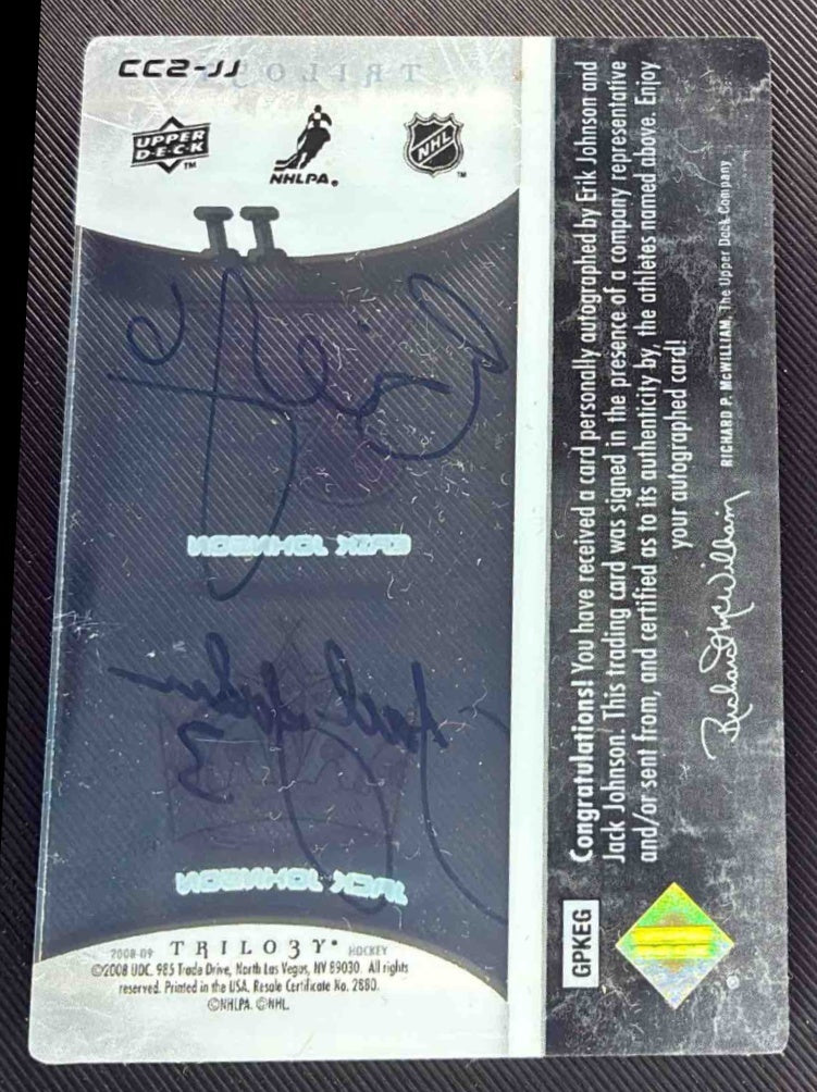 2008-09 UD Trilogy Clearcut Combos #CC2-JJ Erik Johnson Jack Johnson Auto /100