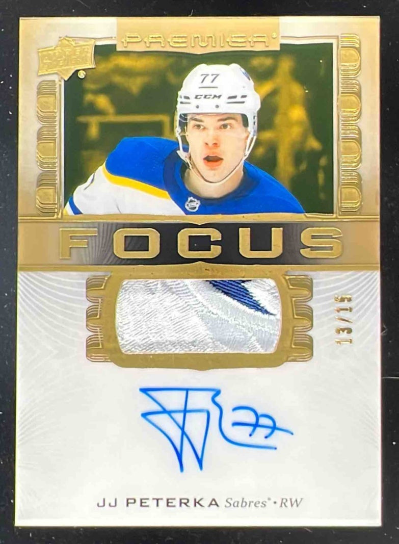 2024-25 UD Premier Focus Auto Patch Gold #PFP-JP JJ Peterka Autograph Auto /15