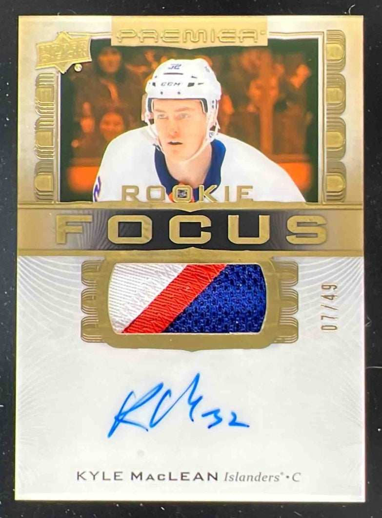 2024-25 UD Premier Focus Auto Patch Rookies Gold Kyle MacLean Auto /49