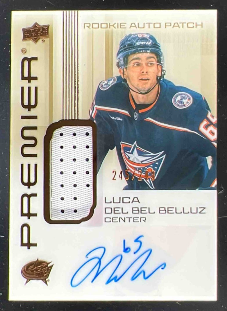 2024-25 UD Premier Acetate Rookies Patch #AR-LD Luca Del Bel Belluz Auto /249