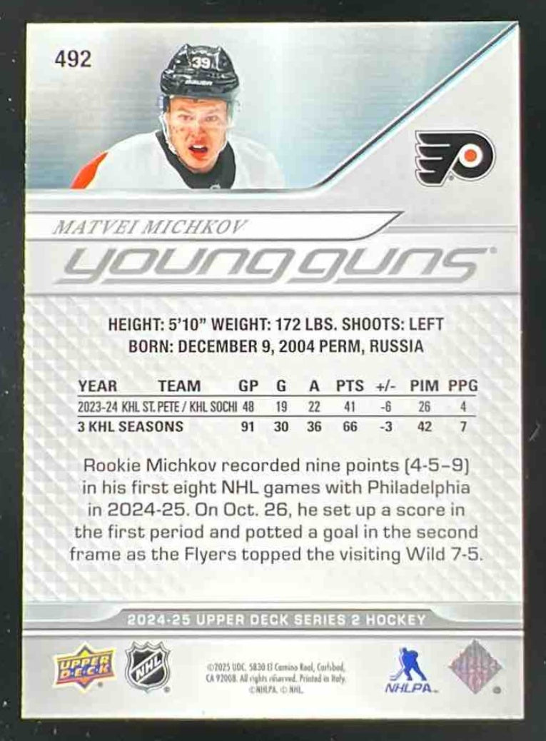 2024-25 Upper Deck #492 Matvei Michkov Young Guns RC
