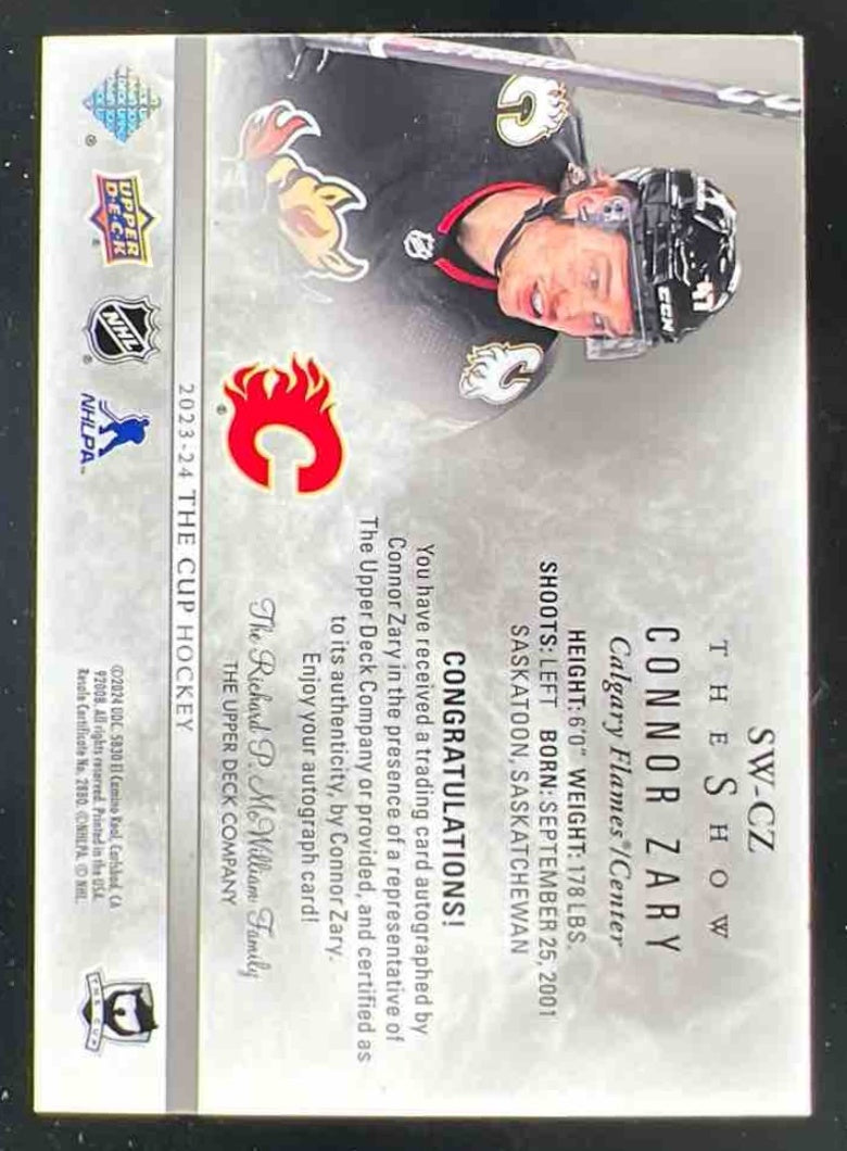 2023-24 Upper Deck The Cup The Show White Auto #SW-CZ Connor Zary Autograph Auto