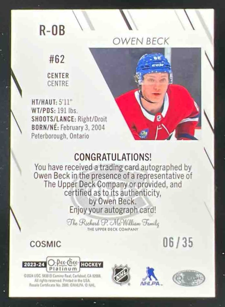2024-25 O-Pee-Chee Platinum Rookie Auto Cosmic #R-OB Owen Beck /35