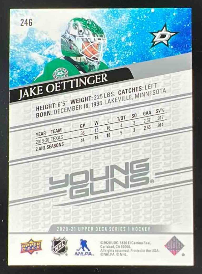 2020-21 Upper Deck #246 Jake Oettinger Young Guns RC