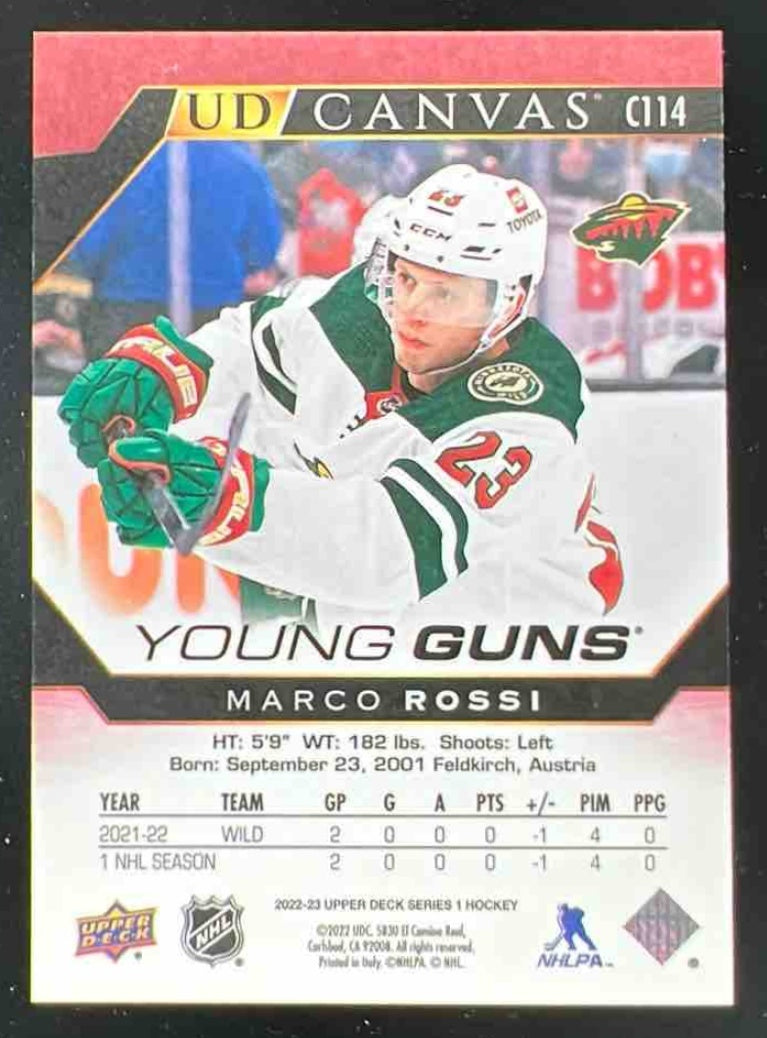 2022-23 Upper Deck UD Canvas #C114 Marco Rossi Young Guns RC