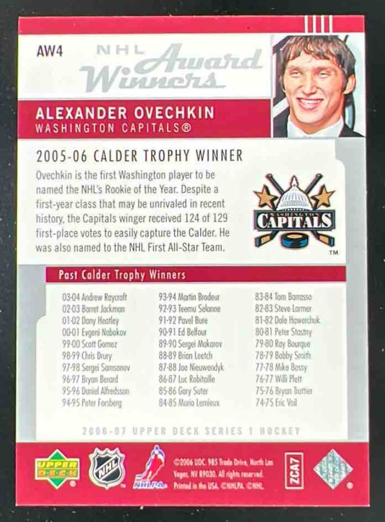 2006-07 Upper Deck NHL Award Winners #AW4 Alexander Ovechkin