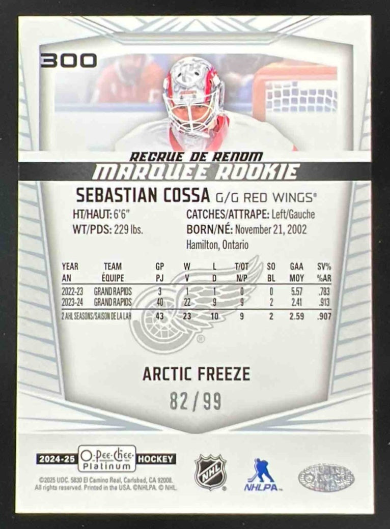 2024-25 O-Pee-Chee Platinum Arctic Freeze #300 Sebastian Cossa RC Rookie /99