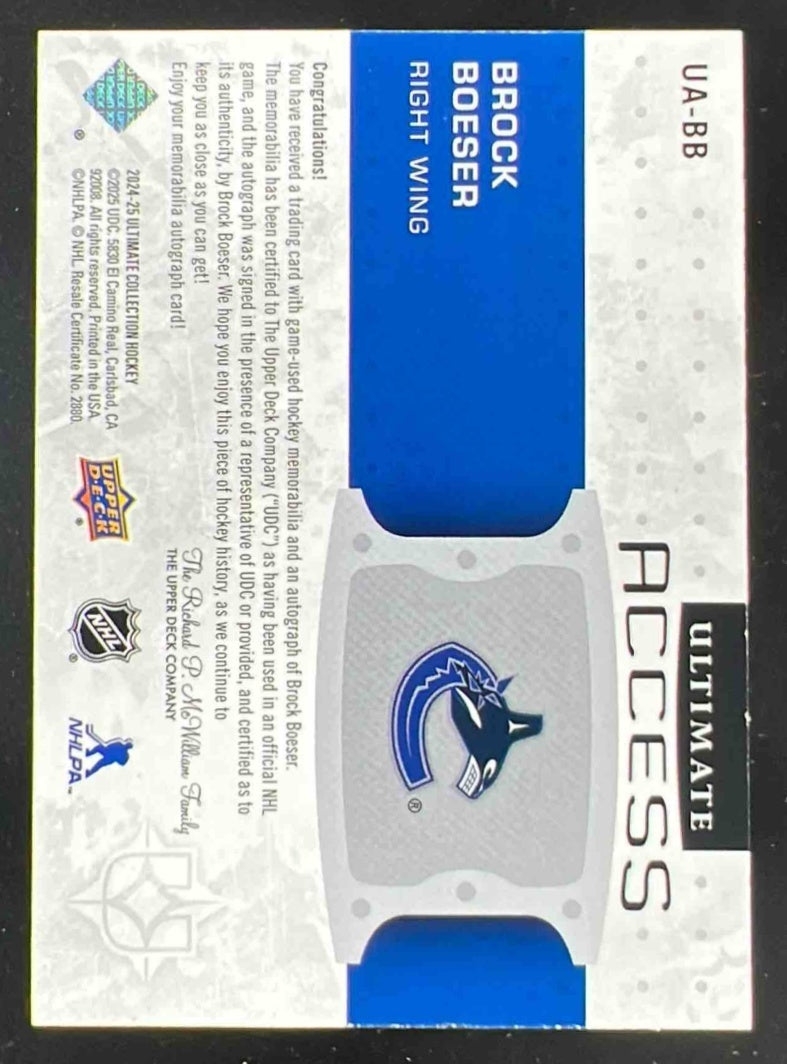 2024 Ultimate Collection Ultimate Access #UA-BB Brock Boeser Autograph Auto /49