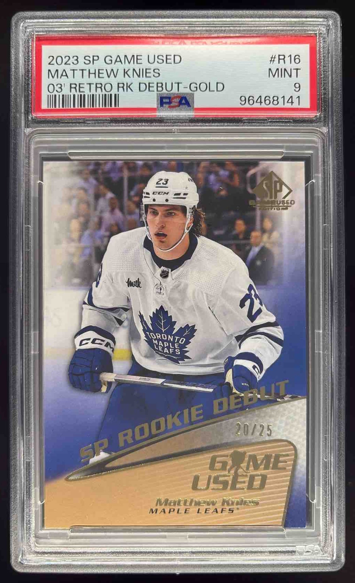 2023 SP Game Used Retro Rookie Debut Gold #R-16 Matthew Knies RC /25 PSA 9