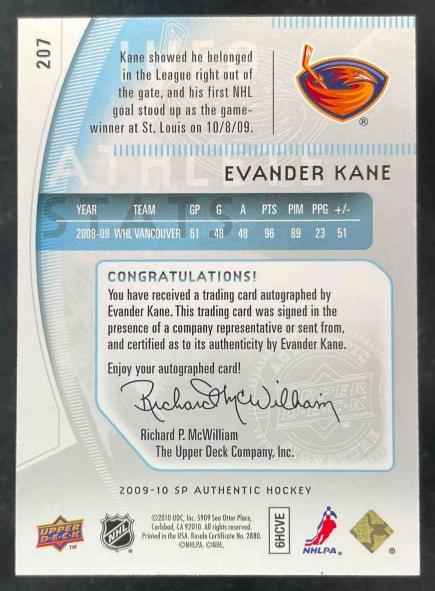 2009-10 SP Authentic #207 Evander Kane Autograph RC Future Watch Auto /999