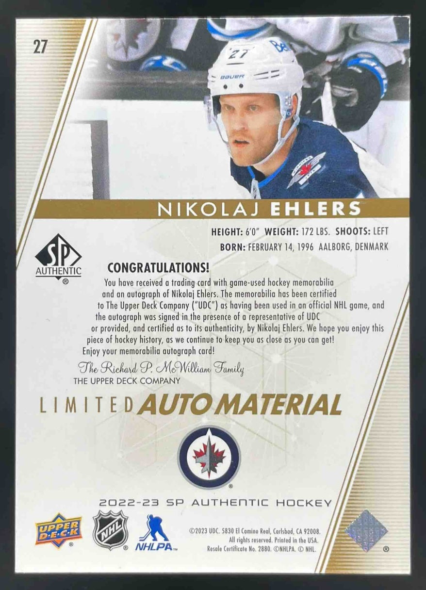 2023-24 SP Authentic Limited Auto Patch #27 Nikolaj Ehlers Autograph Auto /100
