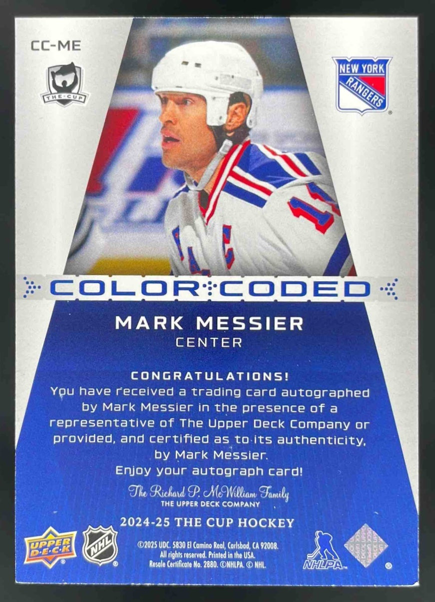2024-25 Upper Deck The Cup Color Coded #CC-ME Mark Messier Autograph Auto /35