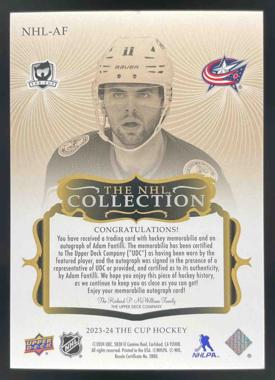 2023 The Cup Update The NHL Collection #NHL-AF Adam Fantilli Autograph Auto /35