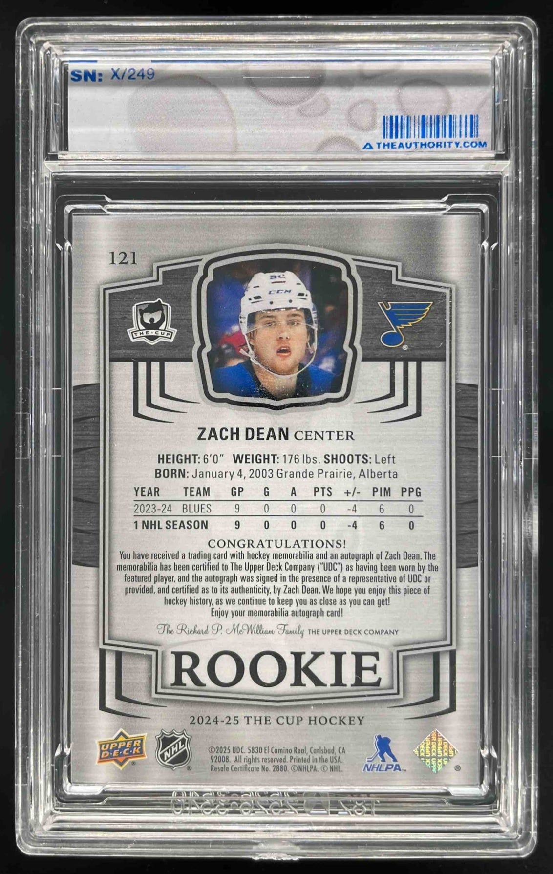 2024-25 Upper Deck The Cup #121 Zach Dean Rookie Patch Auto Autograph RC /249