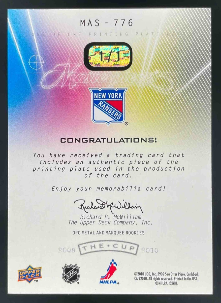 2009 The Cup Printing Plates O-Pee-Chee Yellow #MAS-776 Matt Gilroy RC 1/1