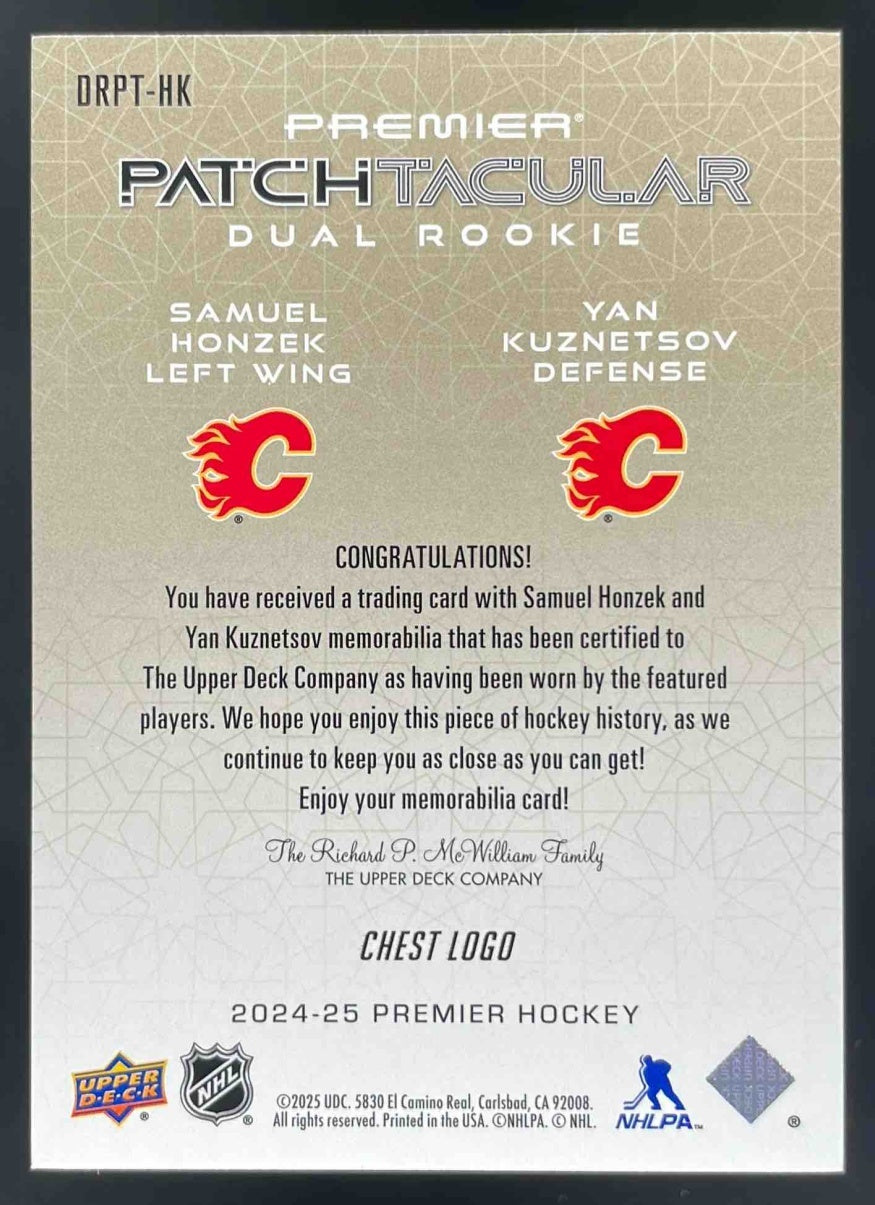 2024 UD Premier Patch Taculars Dual Chest Logo Samuel Honzek Yan Kuznetsov /25
