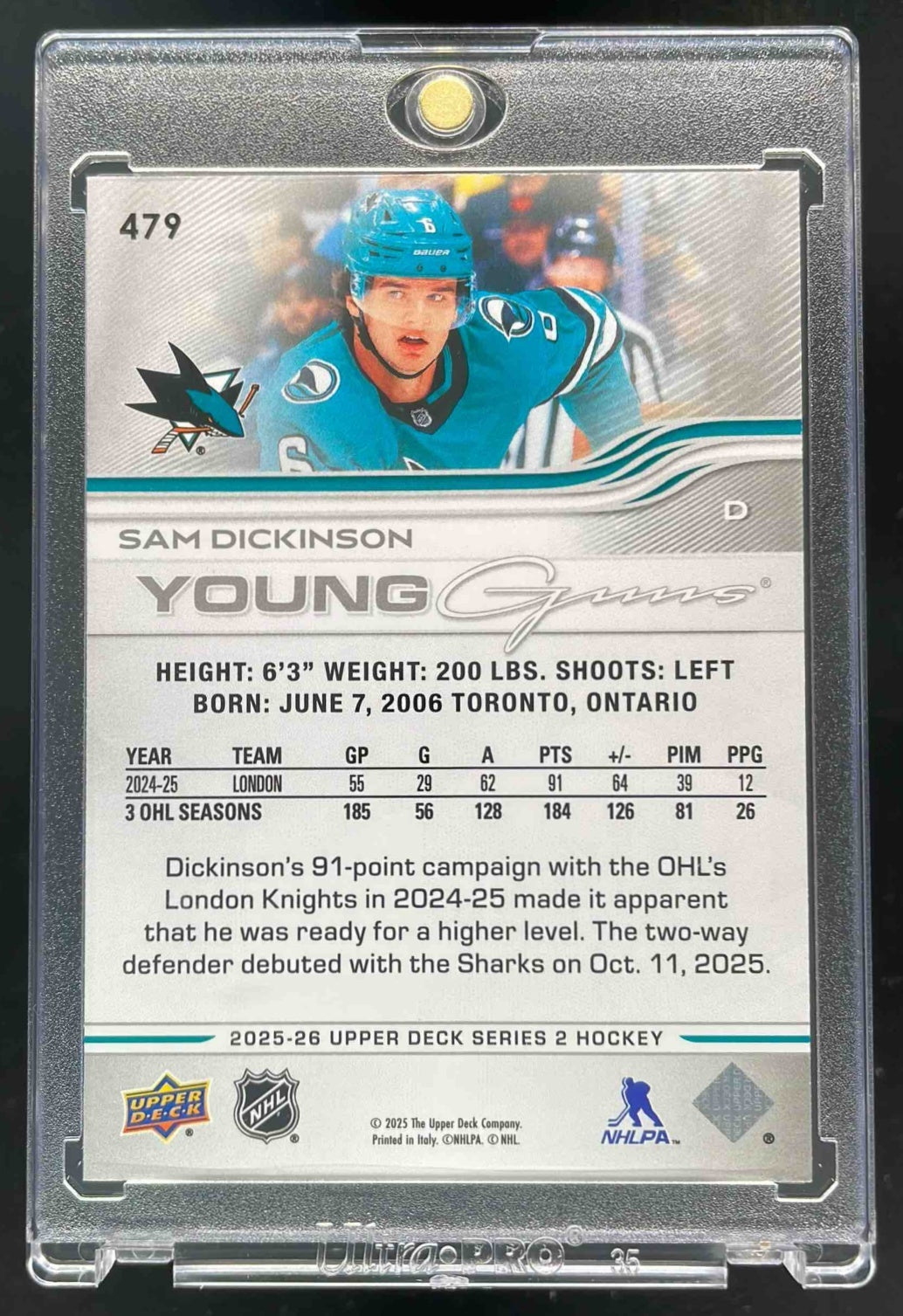 2025-26 Upper Deck Series 2 Young Guns High Gloss #479 Sam Dickinson RC /10