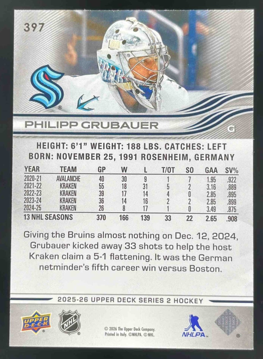 2025-26 Upper Deck Series 2 Deluxe #397 Philipp Grubauer /250