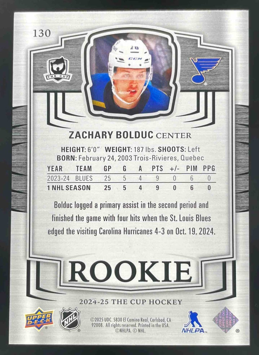 2024-25 Upper Deck The Cup #130 Zachary Bolduc RC /249