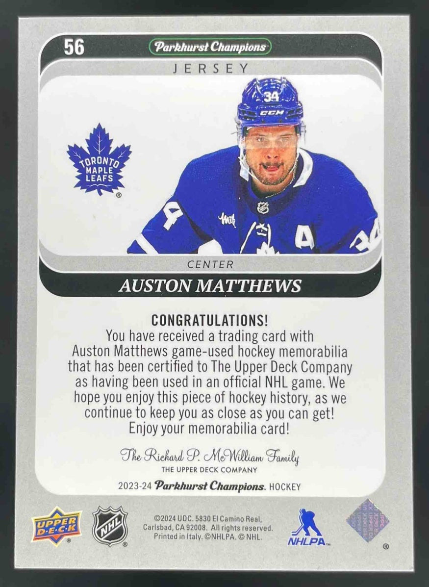 2023-24 Parkhurst Champions Jersey #56 Auston Matthews MEM