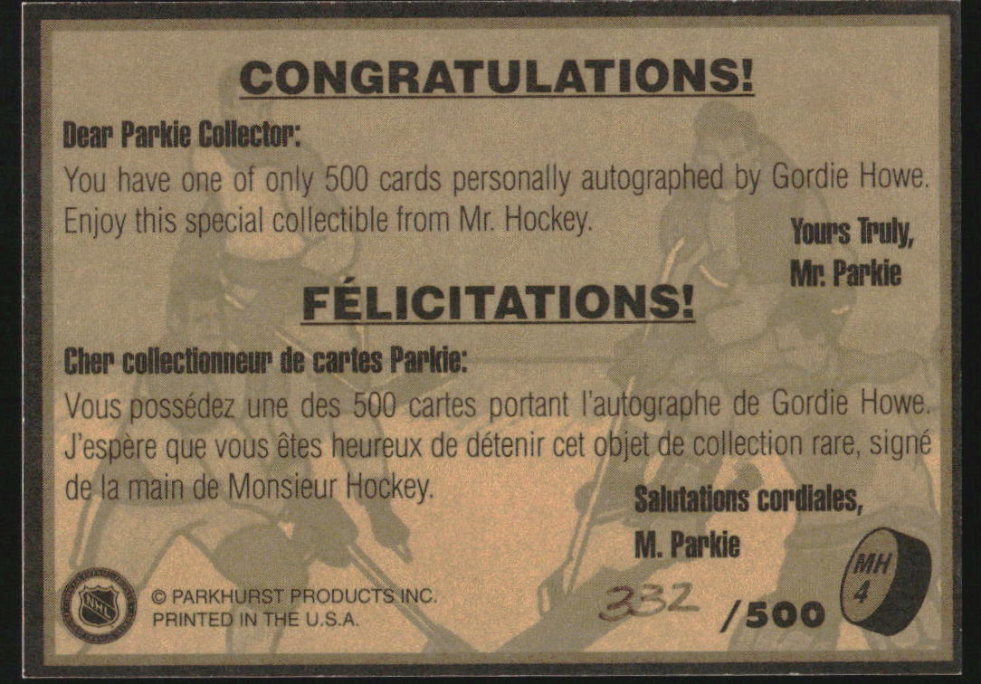 1995-96 Parkhurst '66-67 Gordie Howe Mr. Hockey Auto #MH4 Gordie Howe /500