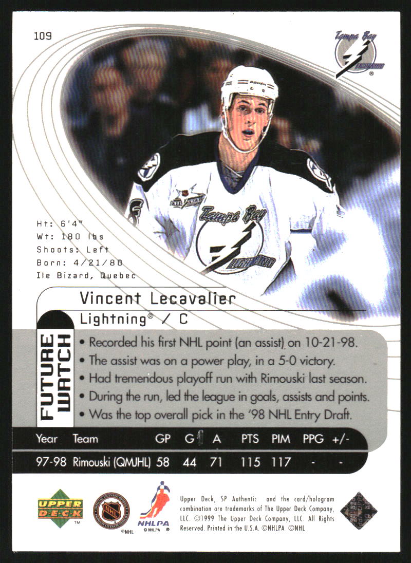 1998-99 SP Authentic #109 Vincent Lecavalier /2000
