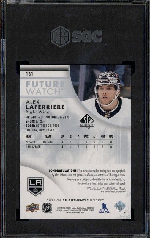 2023 UD SP Authentic Future Watch Auto #181 Alex Laferriere Auto /999 SGC 9.5
