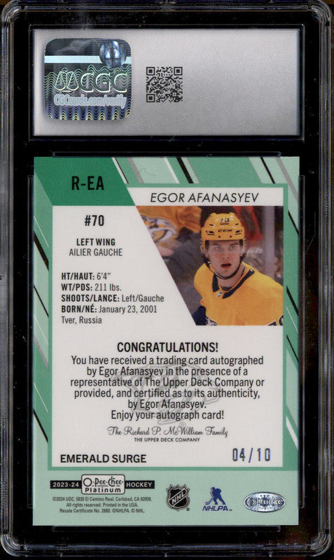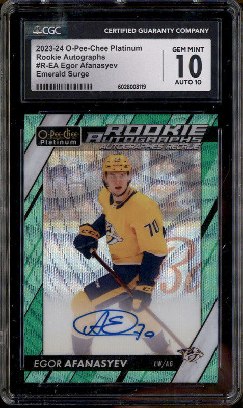 2023 O-Pee-Chee Platinum Rookie Auto Emerald Surge Egor Afanasyev RC /10 CGC 10