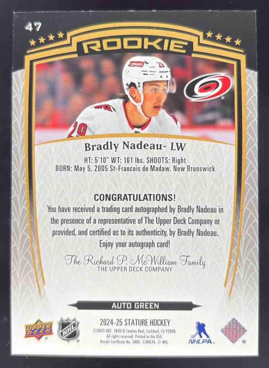 2024-25 Upper Deck Stature Auto Green #47 Bradly Nadeau Autograph Auto /199