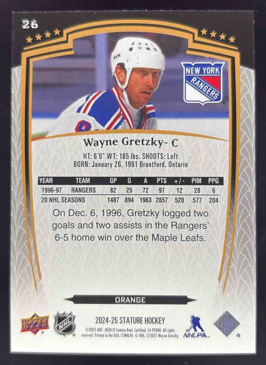 2024-25 Upper Deck Stature Orange #26 Wayne Gretzky Legend /199