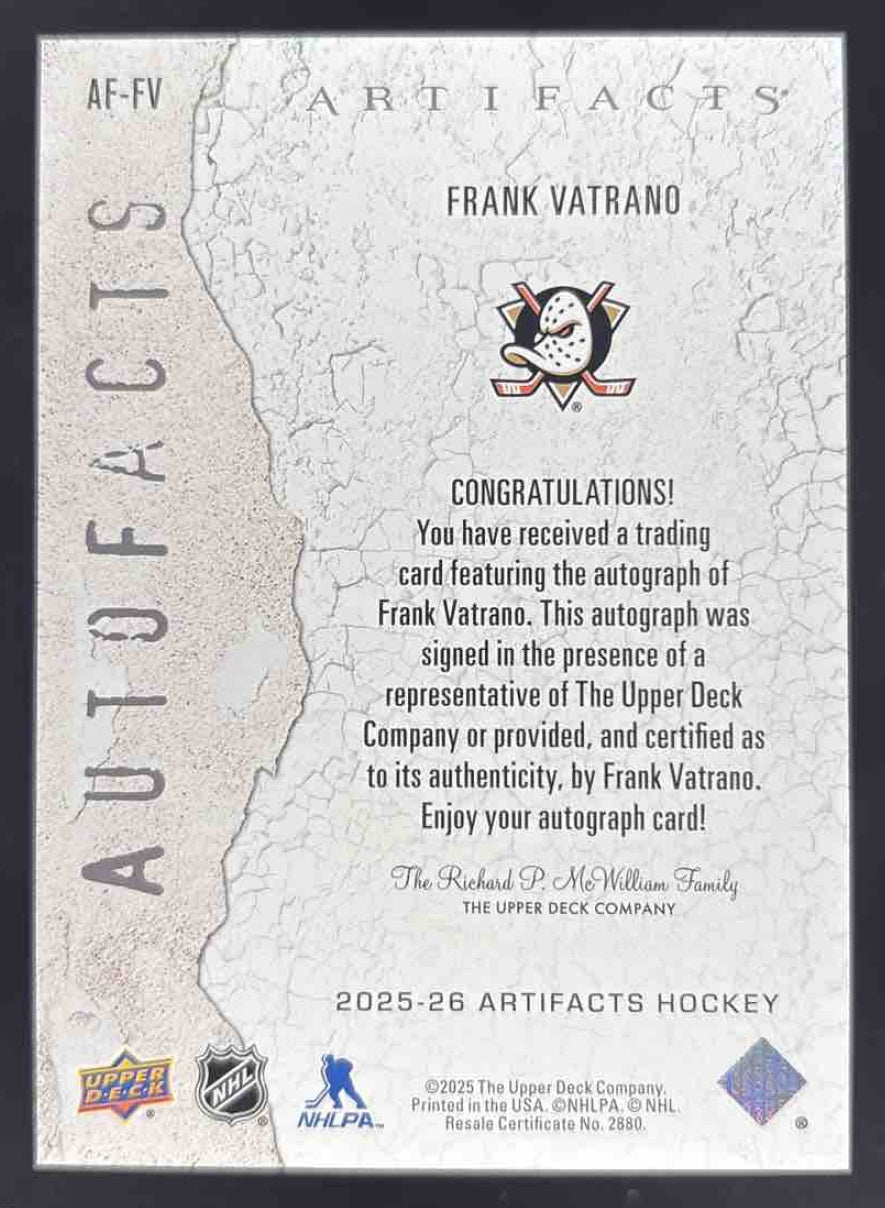2025-26 Upper Deck Artifacts Autofacts #AF-FV Frank Vatrano Autograph Auto