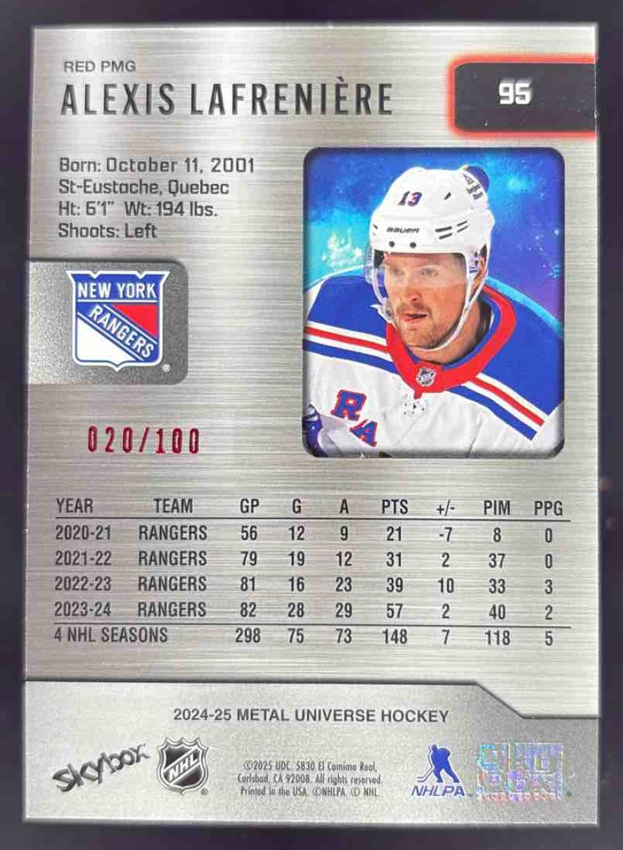 2024 Upper Deck Skybox Metal Universe Red Precious Gems Alexis Lafreniere /100