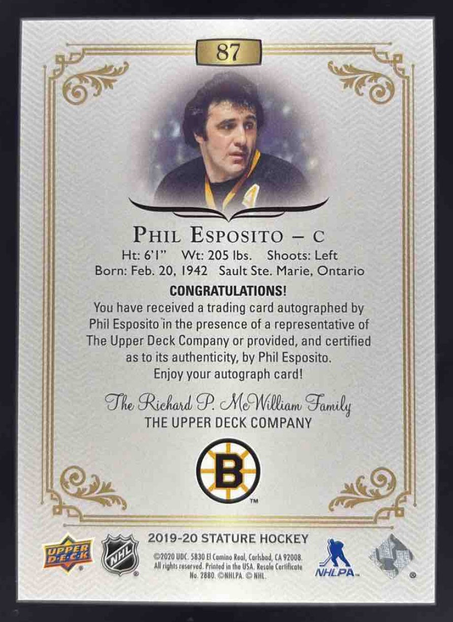 2024 Upper Deck Stature 2019-20 Update Auto #87 Phil Esposito SP Autograph Auto