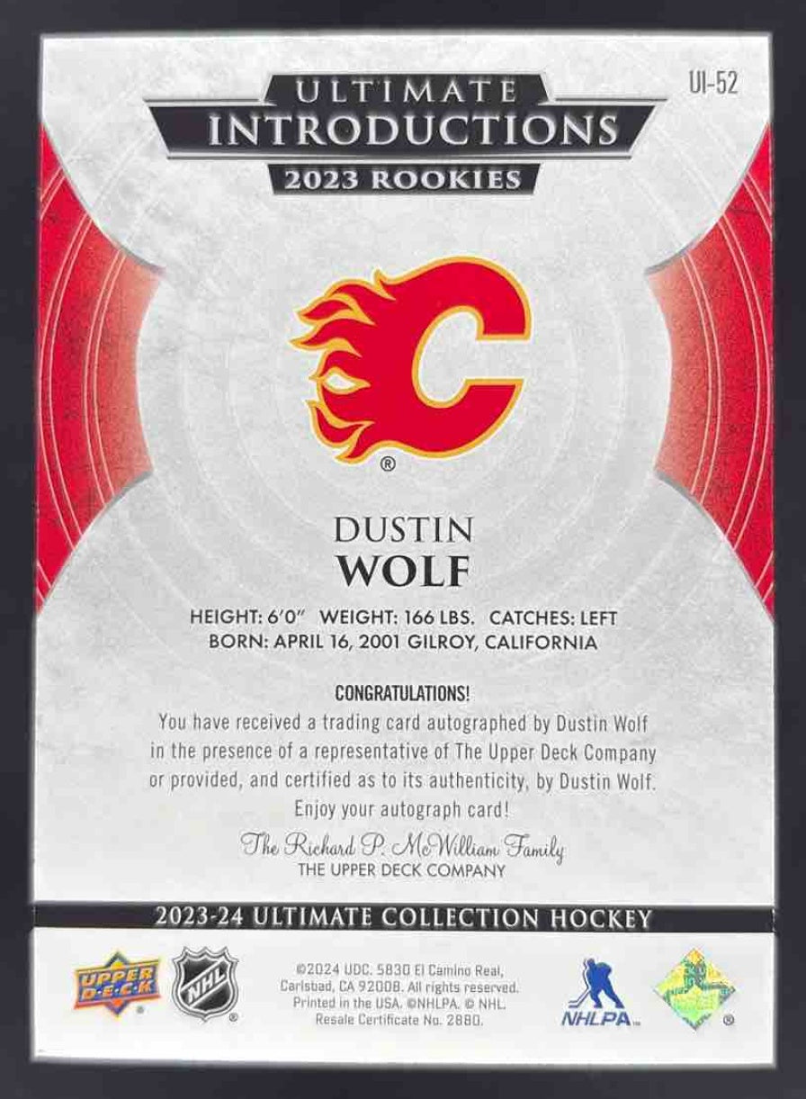 2023 Ultimate Collection Introductions Auto #UI-52 Dustin Wolf Autograph RC Auto