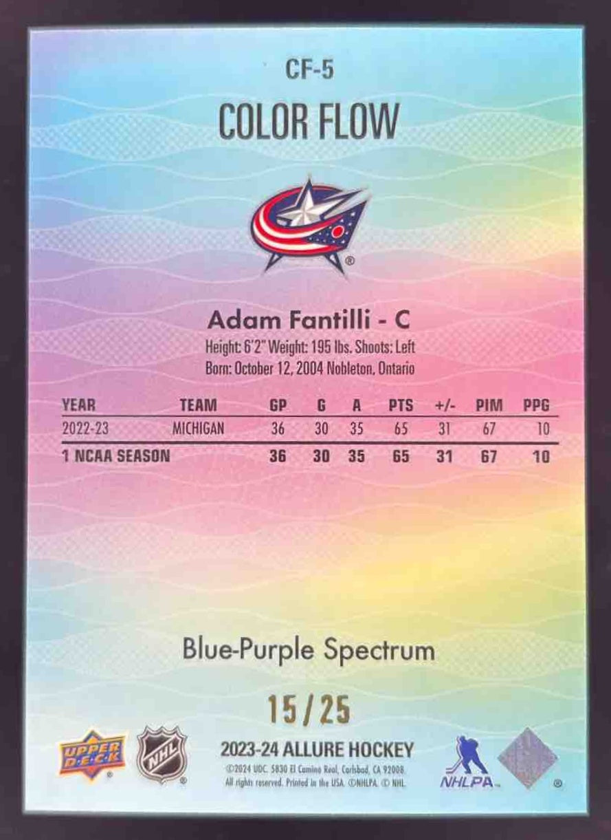 2023-24 Upper Deck Allure Color Flow Blue/Purple Spectrum Adam Fantilli RC /25