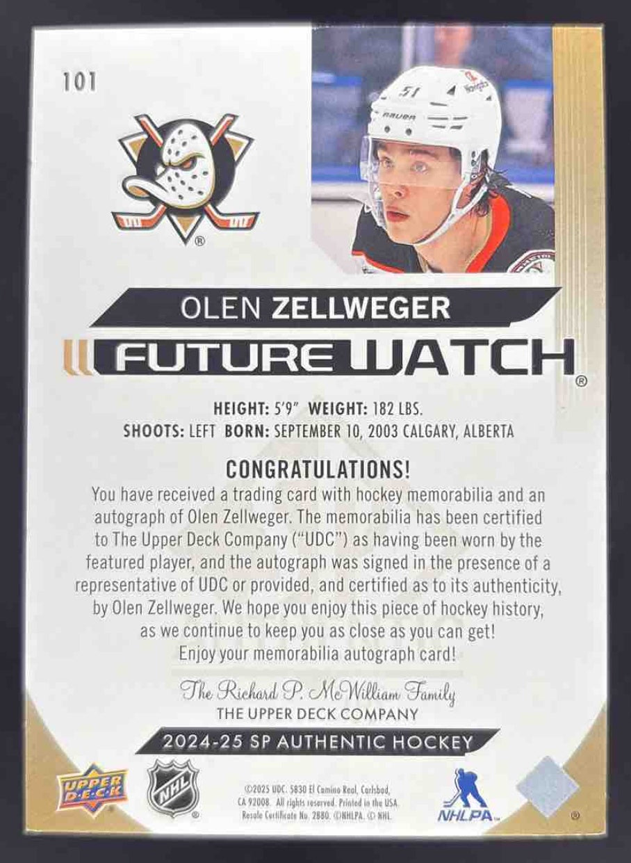 2024 SP Authentic Horizontal Future Watch Limited Auto Patch Olen Zellweger /50