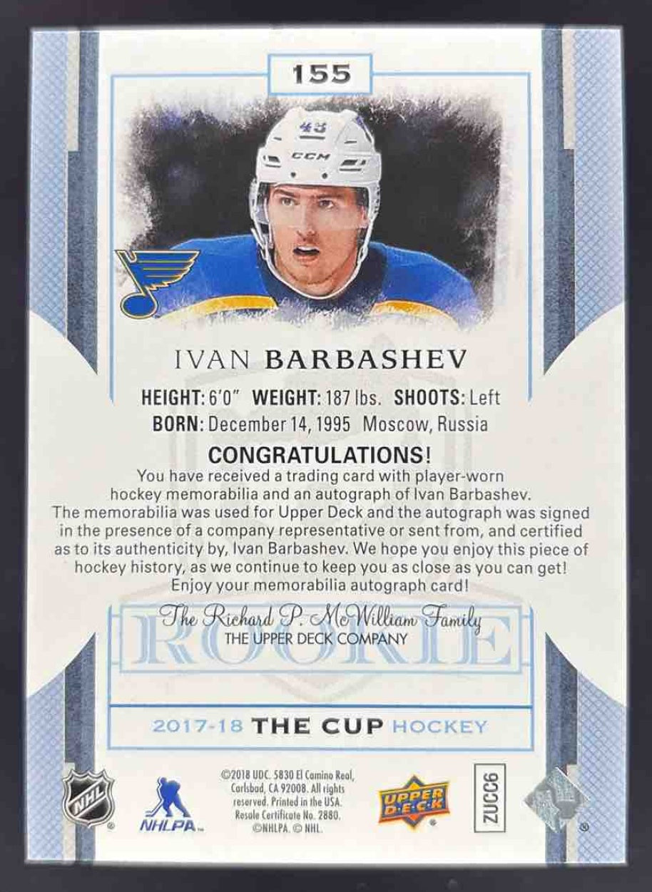 2017-18 Upper Deck The Cup #155 Ivan Barbashev Autograph RC Auto /249