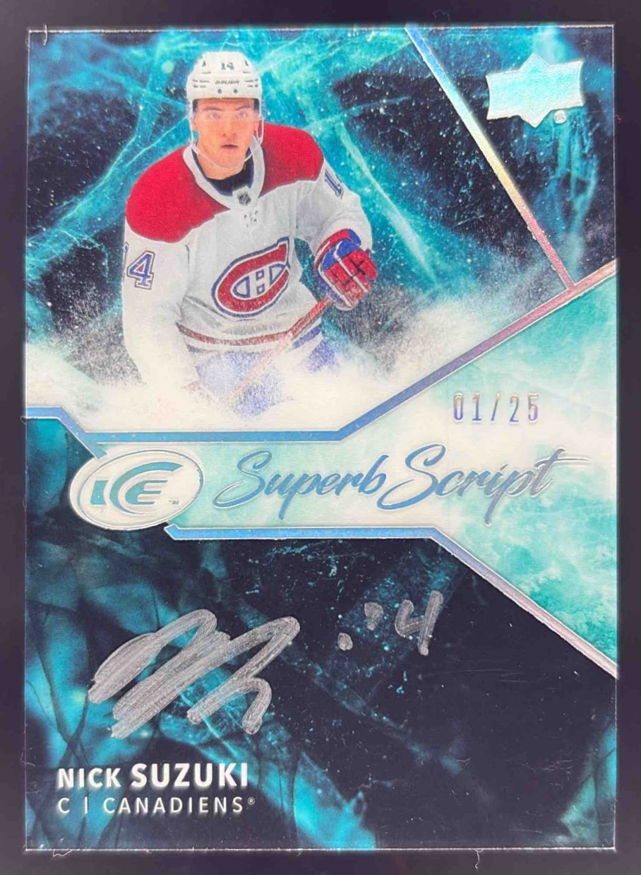 2020-21 Upper Deck Black Diamond Sparkling Scripts Spectrum Nick Suzuki Auto /25
