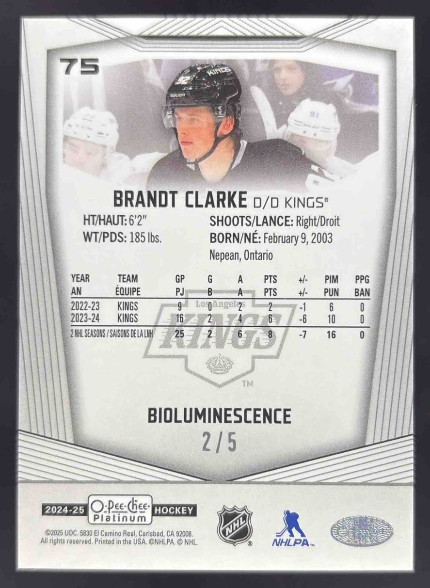 2024-25 O-Pee-Chee Platinum Bioluminescence #75 Brandt Clarke /5